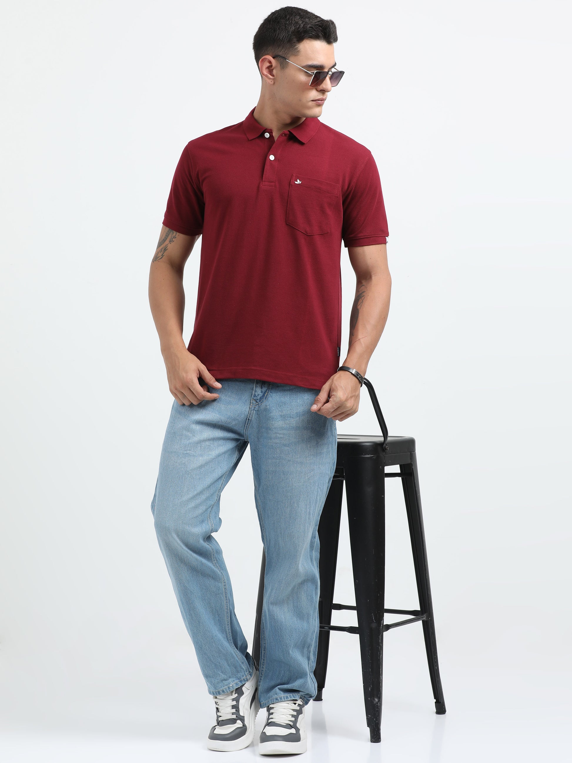 Bold meets classic in this Men's Cotton Crimson Polo T-shirt. Made from 100% breathable cotton, it delivers day-long comfort with a vibrant pop of rich crimson red. The timeless polo design—featuring a ribbed collar, short sleeves, and a two-button placket—makes it easy to dress up or down, whether you're heading to brunch or the boardwalk.