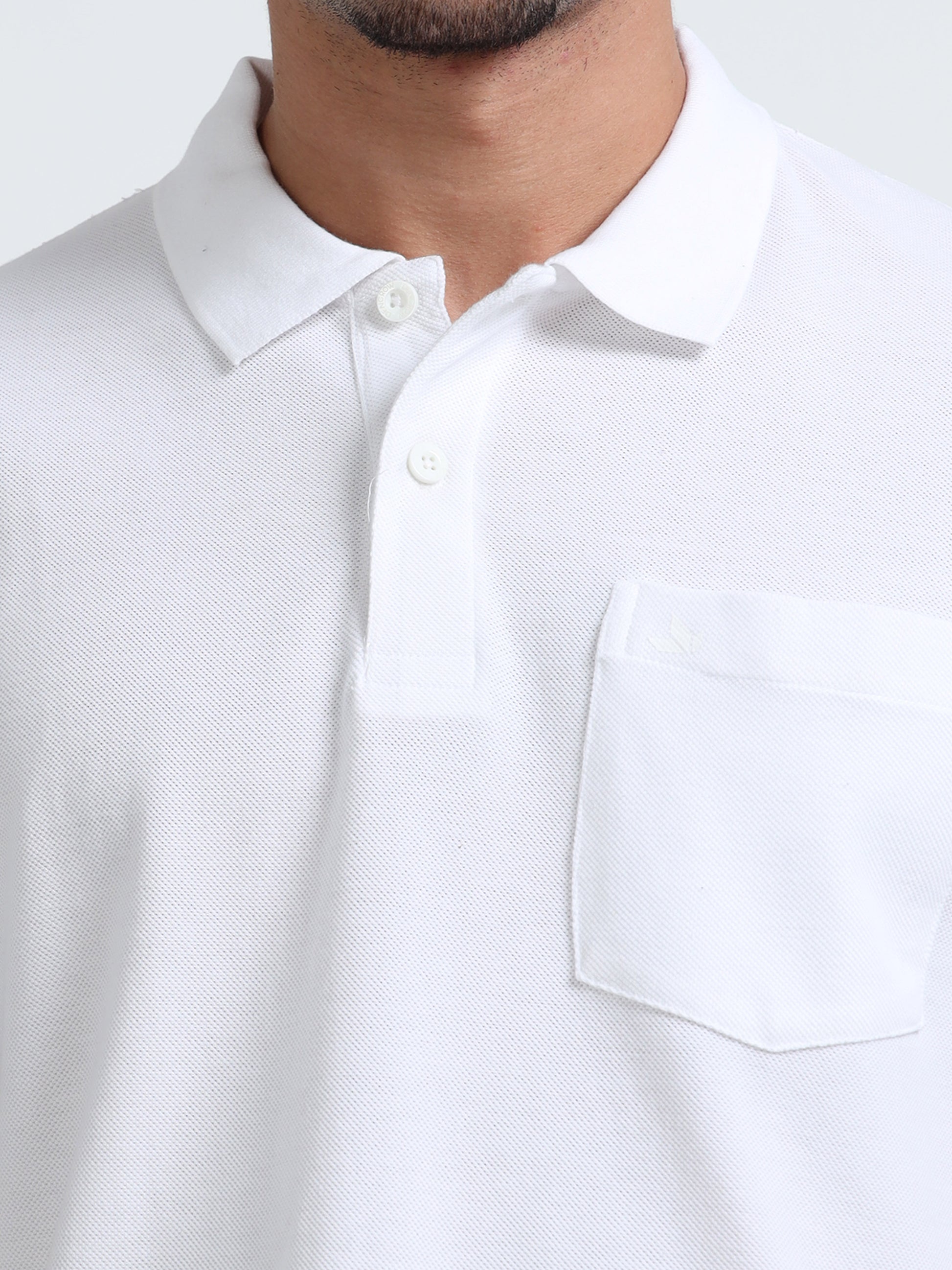 Clean, timeless, and endlessly versatile. This White Polo T-shirt is crafted from 100% pure cotton for a naturally breathable, soft feel. Designed with a classic polo silhouette, it features a ribbed collar, short sleeves, and a two-button placket. A wardrobe essential that works effortlessly from casual weekends to smart-casual settings.