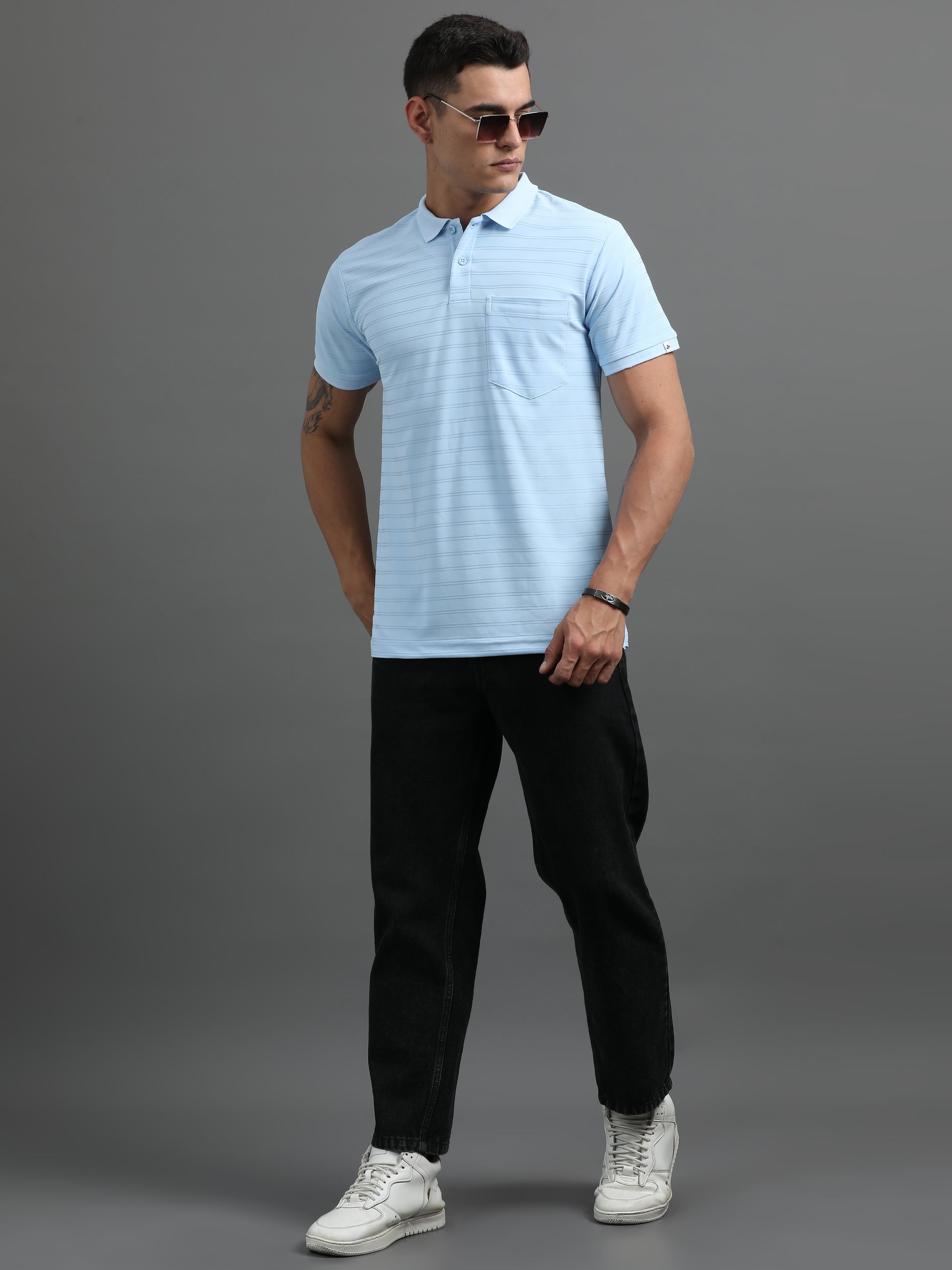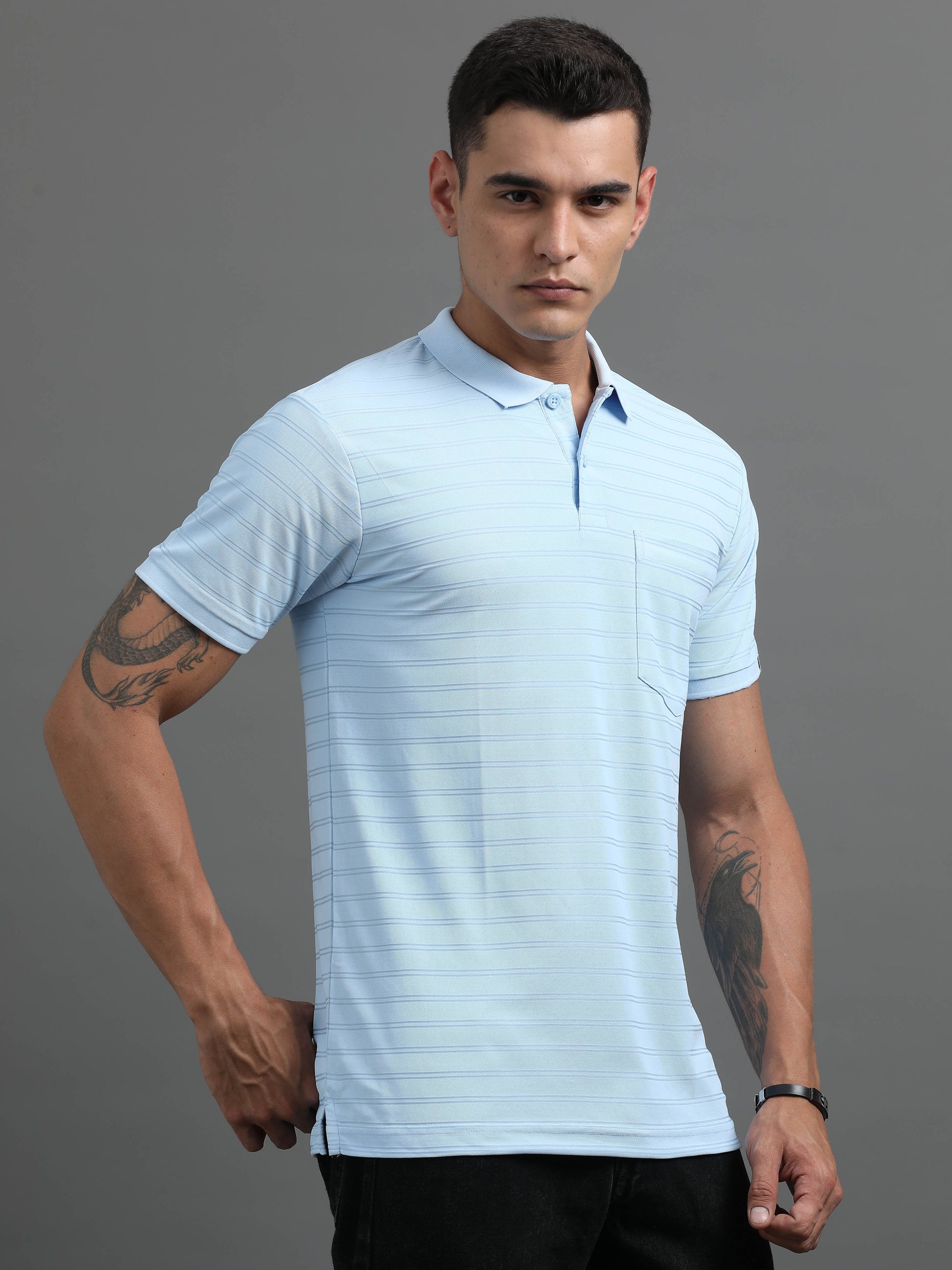Cool, clean, and casually refined. The Cloud Blue Polo T-shirt is designed in a smart fit that strikes the perfect balance between relaxed and tailored. Crafted from a cotton-rich fabric with a hint of stretch, it keeps you comfortable while maintaining a sharp silhouette. Finished with a ribbed collar, short sleeves, and a two-button placket—this is your go-to for effortless everyday style.