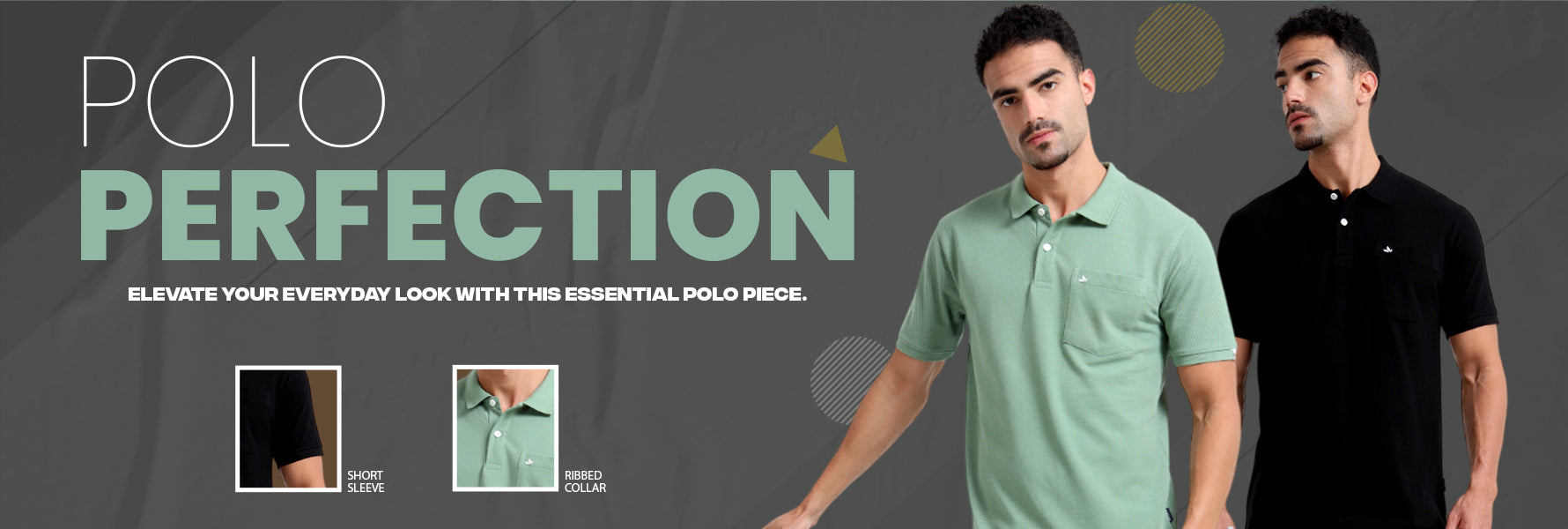 - Ribbed polo collar and sleeve cuffs