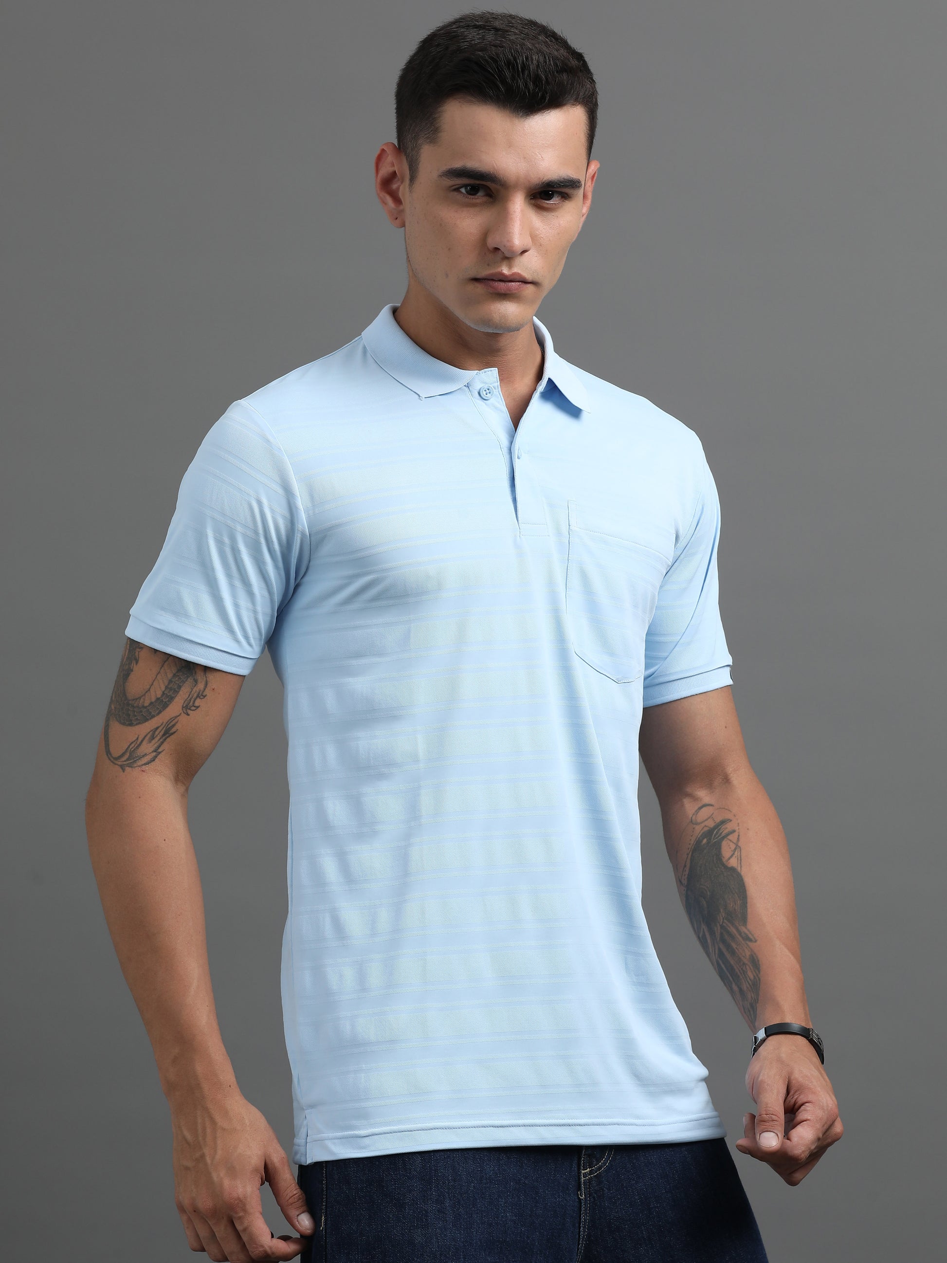Clean, crisp, and effortlessly stylish. This Sky Blue Polo T-shirt is tailored in a smart fit that flatters without clinging. Crafted from a soft, breathable cotton-blend fabric, it offers all-day comfort with a refined look. Featuring a classic polo collar, button placket, and subtle ribbed detailing, it’s your go-to piece for both casual Fridays and weekend brunches.